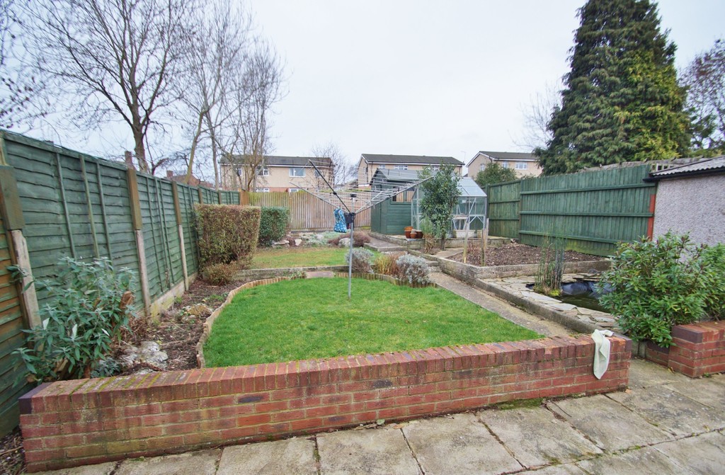 REAR GARDEN Slab patio area across the rear of the property with cold water tap and low brick walls to the front. Rear door into garage. Concrete path leading down the garden with laid to lawn areas, pond and planting beds. A range of mature bushes and herbaceous borders. Greenhouse. Timber shed providing useful storage. Enclosed by timber fencing to all sides.