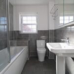 The first floor offers three generously sized bedrooms, each presented in pristine condition. The master bedroom features a stylish en suite shower room, while the additional bedrooms are served by a modern family bathroom, fitted with a high-quality suite and contemporary tiling.