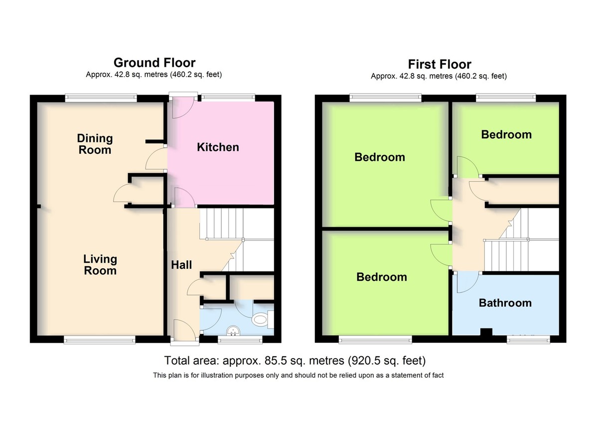 Upstairs, the first floor features three generously sized bedrooms and a family bathroom fitted with a white suite. The property further benefits from gas-fired central heating and uPVC double glazing throughout.