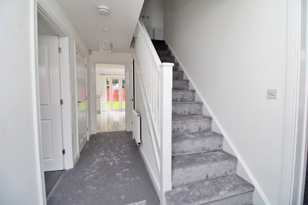 To the first floor, the property continues to impress with four well-proportioned bedrooms, all benefiting from built-in wardrobes. The master bedroom features its own en-suite shower room, while the family bathroom boasts a contemporary three-piece suite finished to a high standard. The home further benefits from gas-fired central heating and uPVC double glazing throughout.