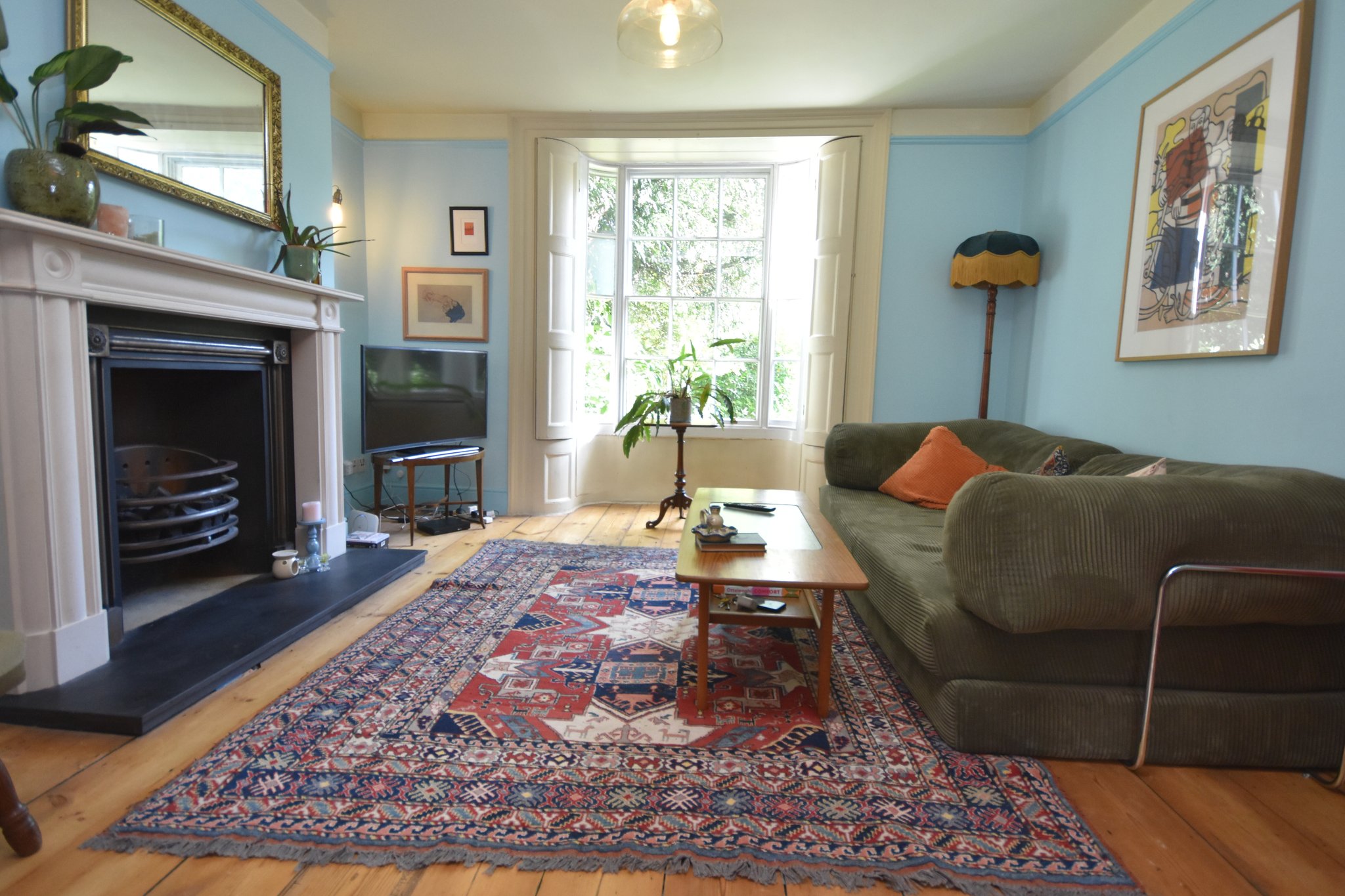 13' 6" x 12' 9" (4.11m x 3.89m) Bay window with original shutters to the front aspect. Radiator. Original feature fireplace. Opening into: