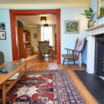 Radiator. Stairs leading to the second floor. Doors into: