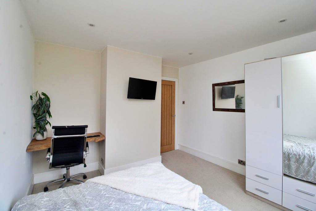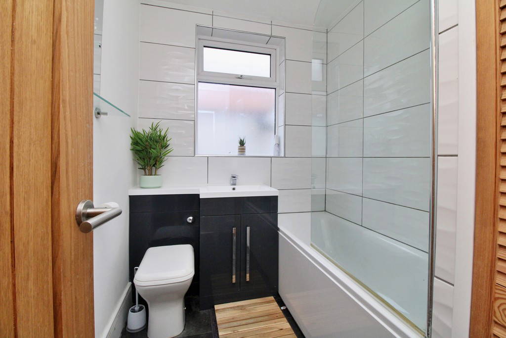Upstairs, the property offers three generously sized double bedrooms, each tastefully decorated and finished to a high specification. The luxurious family bathroom has been fully refitted with contemporary sanitaryware, sleek tiling, and quality fixtures, creating a calm and elegant retreat.