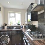 9' 9" x 5' 11" (2.97m x 1.80m) Fitted kitchen suite comprising of a range of  base and eye level units with contrasting work surface mounted over. Inset one bowl and drainer unit with mixer tap over. Fitted electric oven. Fitted gas hob with extractor hood mounted over. Space and plumbing for washing machine and fridge/freezer. Double glazed window to the front aspect.