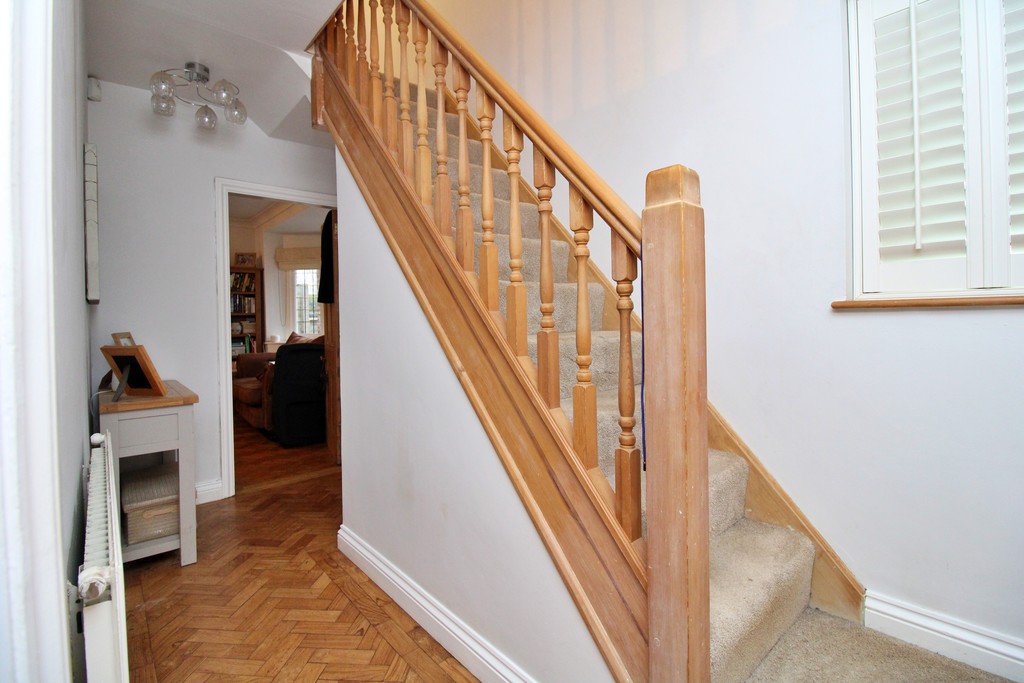 The property is approached via a solid wood front door which opens into a spacious hallway featuring attractive parquet flooring, stairs rising to the first floor and access to a useful under-stairs storage cupboard. Doors lead through to the principal reception rooms and kitchen.