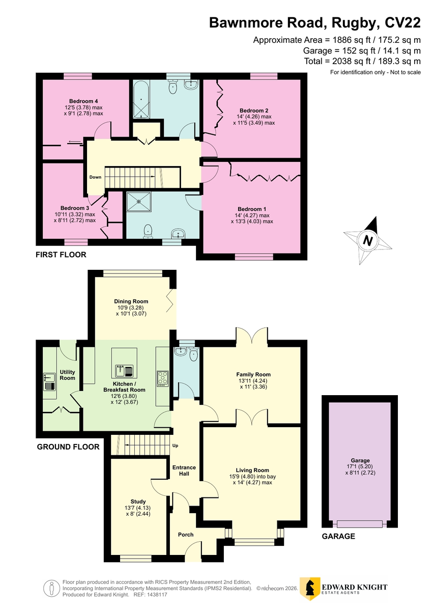 To the first floor, a spacious landing leads to four well-proportioned bedrooms. The principal bedroom benefits from a large, well-appointed en suite shower room, while the remaining bedrooms are served by a modern family bathroom.