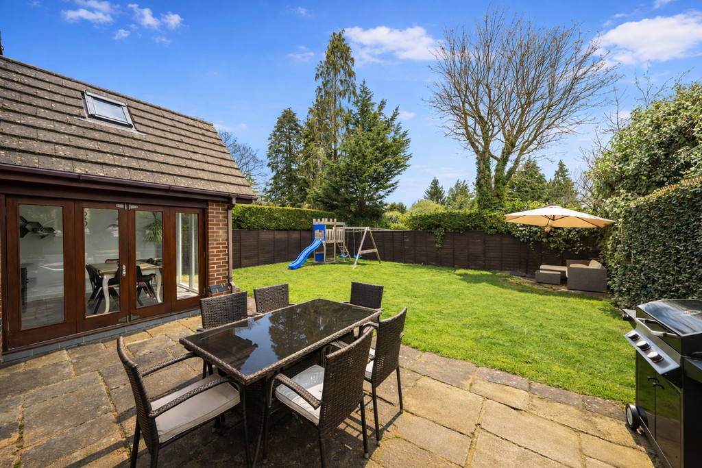 Externally, the property continues to impress with a private rear garden, thoughtfully arranged with a patio area and a well-maintained lawn-ideal for outdoor entertaining and relaxation. A single garage further complements the home.