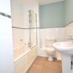 Fitted with three piece suite comprising low level flush wc, pedestal wash hand basin with mixer tap over, panelled bath with mixer tap over. Radiator. Airing cupboard.