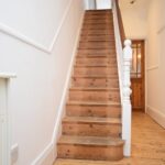 Stairs rising from the entrance hall, access to loft space, radiator, door to cupboard and wooden flooring. Doors leading to:-