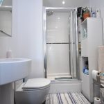 6' 9" x 5' 8" (2.06m x 1.73m) Low level WC. Wash hand basin with mix tap over. Shower cubicle. Electric heated towel rail.