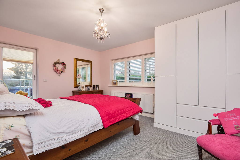 The main living accommodation briefly comprises an entrance hall with WC and storage cupboard, opening into a striking open-plan dining hall that forms the heart of the home. From here, the living room enjoys a feature fireplace and stunning views over the rear garden, while the fully fitted kitchen boasts integrated appliances. The upper floor also offers a stylish family bathroom with bath and double shower, along with three generous double bedrooms, including an impressive principal suite with private balcony and en-suite shower room.