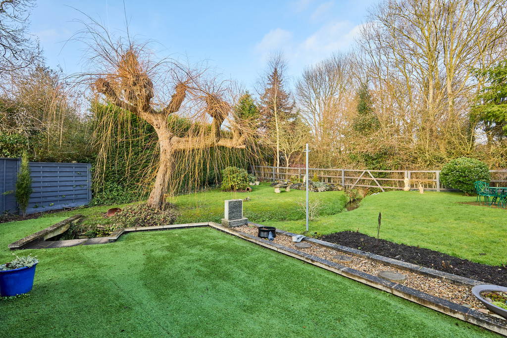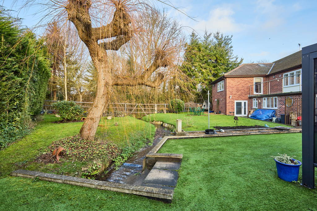 Occupying an impressive plot, the property is approached via a widening driveway with gated access leading to ample parking and additional lawned areas framed by mature trees and established planting. An idyllic stream gently running through the garden provides the perfect finishing touch, creating a tranquil countryside setting ideal for entertaining or quiet enjoyment.