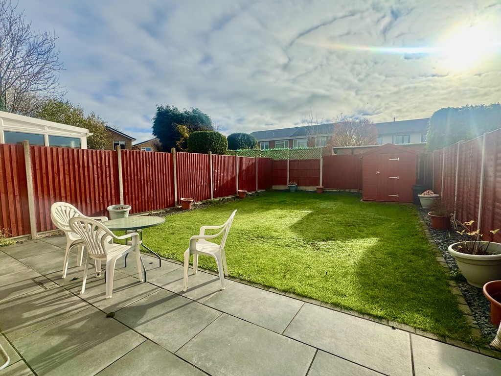 Set on a well-proportioned plot, the property features a pleasant front garden, private driveway, and a single garage. To the rear, the mature and generously sized garden is a standout feature, offering a landscaped feel with established planting and a modern patio area. Its sunny south-facing aspect creates an ideal setting for outdoor dining, family gatherings, or simply enjoying a peaceful afternoon.