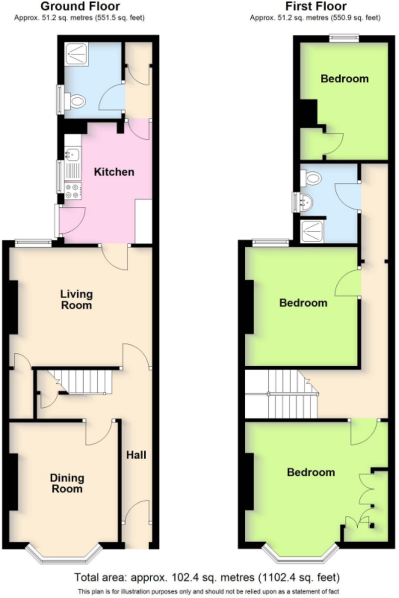 The accommodation briefly comprises a welcoming entrance hall with an impressive dog-leg staircase and landing, two spacious reception rooms-one featuring a beautiful bay window-along with a kitchen, rear lobby, and ground floor shower room. To the first floor are three well-proportioned bedrooms, two of which are particularly spacious and again benefit from bay windows. The bedrooms are served by a further first-floor bathroom.