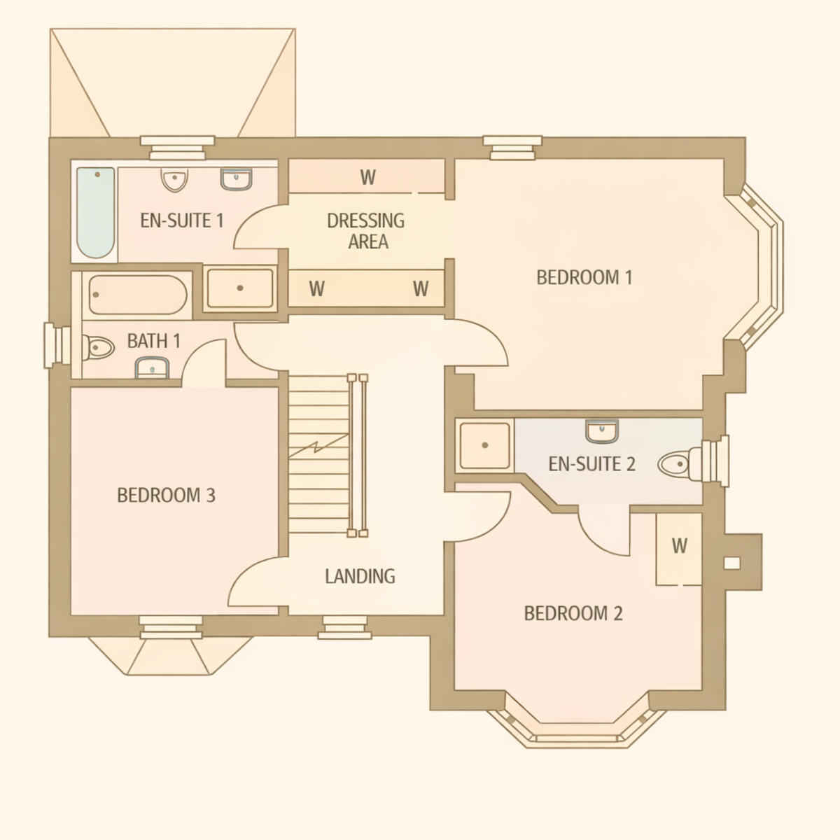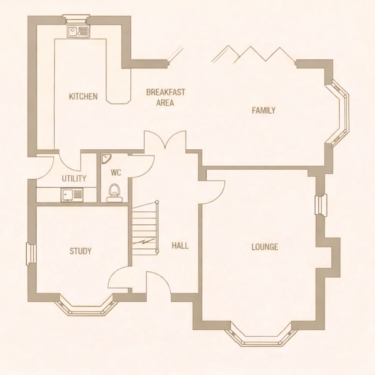Arranged over three floors, the spacious accommodation briefly comprises an inviting entrance hall, cloakroom, lounge, study, and an open-plan kitchen, dining, and family area, complemented by a separate utility room. The first floor features three well-proportioned en-suite bedrooms, including a principal suite with a dressing area. The second floor offers two additional double bedrooms, served by a separate shower room.