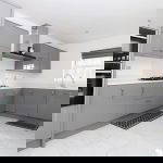 UTILITY ROOM Quartz worktop with double base unit under, inset stainless steel sink and drainer with mixer tap and filtered water tap. Space and plumbing for a washing machine. Single panel radiator with thermostat control. Electric consumer unit. Ceiling extractor fan. Tiled floor. Part obscure double glazed composite panel effect door to the driveway.
