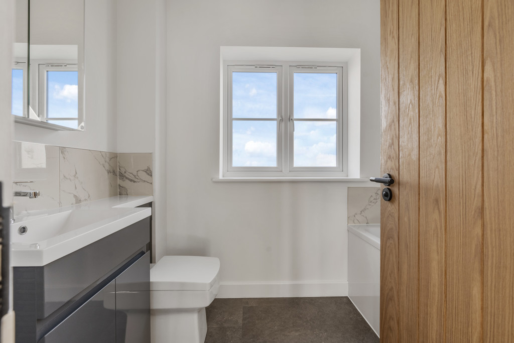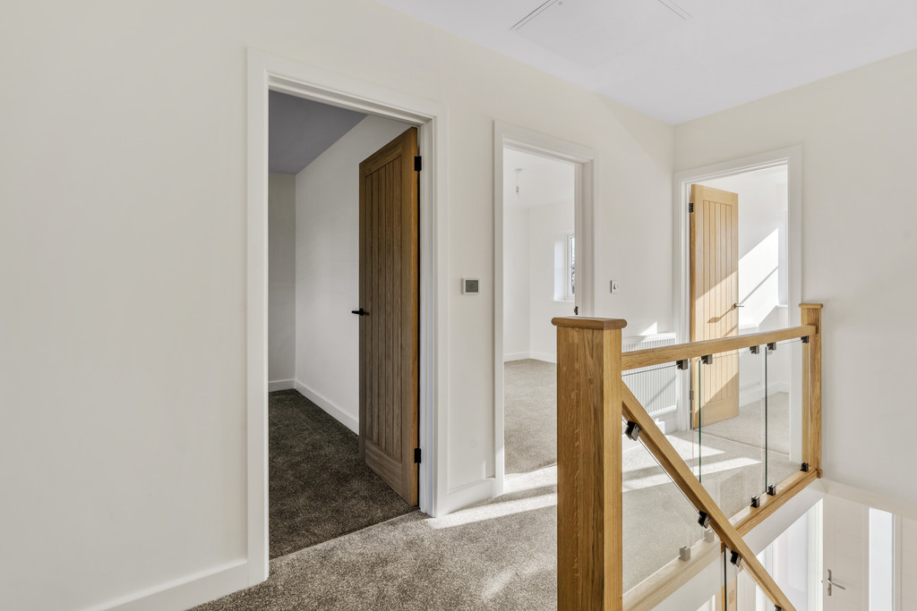 The first floor provides four well-proportioned bedrooms. Three are generously sized doubles, each benefiting from beautiful countryside views, while the fourth offers versatility as a comfortable single bedroom or home office. The master suite enjoys a luxurious en suite shower room, finished with high-quality fixtures and fittings, reflecting the home's superior standard of craftsmanship. A well-appointed family bathroom serves the remaining bedrooms.