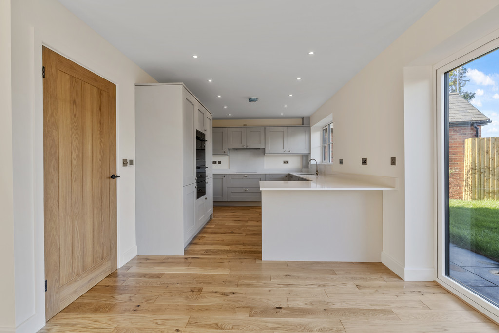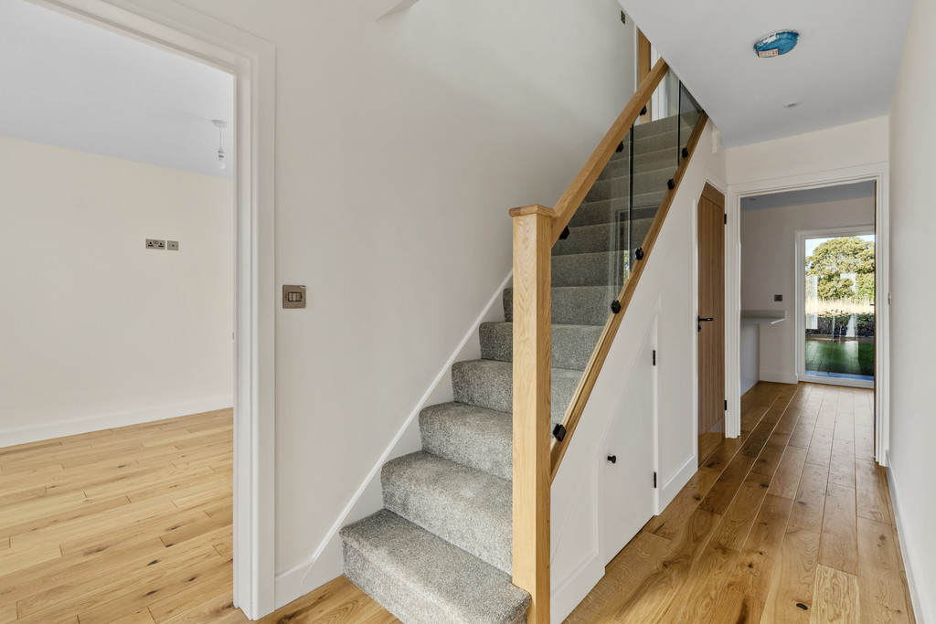 Upon entering, you are greeted by a light-filled and welcoming hallway, enhanced by a feature oak staircase and solid oak internal doors which set the tone for the quality finishes throughout. The ground floor has been fitted with zoned underfloor heating beneath the oak flooring, ensuring comfort and warmth across all living areas.