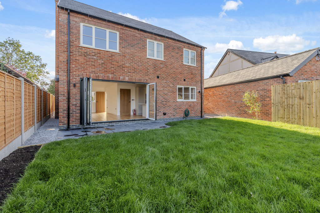 Externally, the property continues to impress. The landscaped rear garden enjoys an open aspect across adjoining fields, creating a wonderful sense of privacy and space. A natural stone patio provides the perfect setting for outdoor dining and entertaining, complemented by a large lawned area and the property's pristine brickwork backdrop.