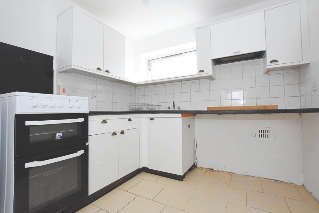 Kitchen 8' 9" x 8' 1" (2.67m x 2.46m) A range of eye and base level kitchen units surmounted by contrasting roll-top worksurfaces. Inset stainless steel sink and drainer. Electric cooker. Space for fridge/freezer, washing machine and further under counter appliance. Tiled floor. Obscure glazed window onto the lounge. uPVC double glazed window to the side aspect.