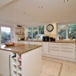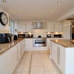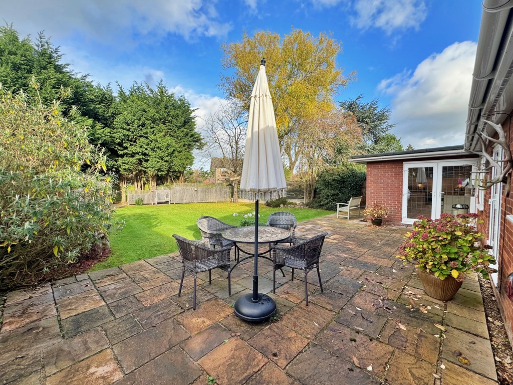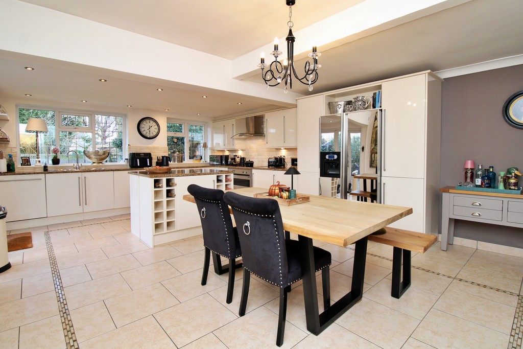 The bungalow offers superb and versatile living accommodation. The light-filled lounge features double doors that open directly onto the rear garden, creating an effortless indoor-outdoor flow. To the rear, the extended kitchen/breakfast room provides an outstanding social and culinary space, complete with a central island, modern fittings, and further double doors leading to the garden. A separate boot room/utility room provides excellent practicality for everyday living. There is also a study, benefitting from under-stairs storage and stairs rising to the first floor.