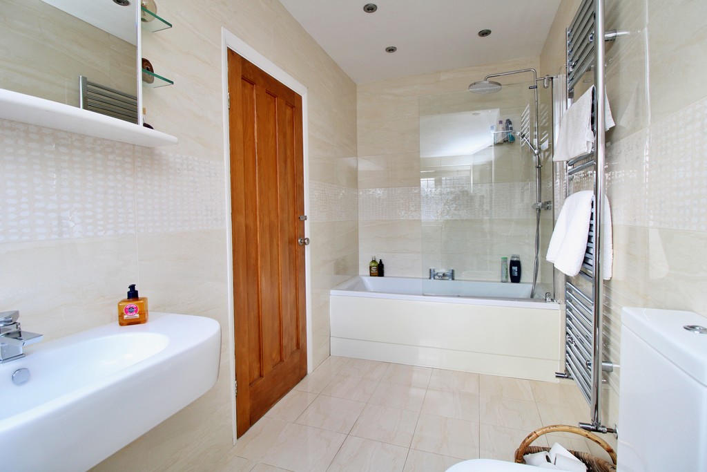 The ground floor provides two well-proportioned double bedrooms, both offering comfortable and flexible accommodation. Completing the ground floor is a modern family bathroom, fitted with a contemporary three-piece white suite.