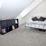 BEDROOM THREE 15' 0" x 8' 11" into eaves (4.57m x 2.72m) Two double glazed windows to the front aspect. Wall mounted radiators. 'Hidden' over stairs storage cupboard with double doors.