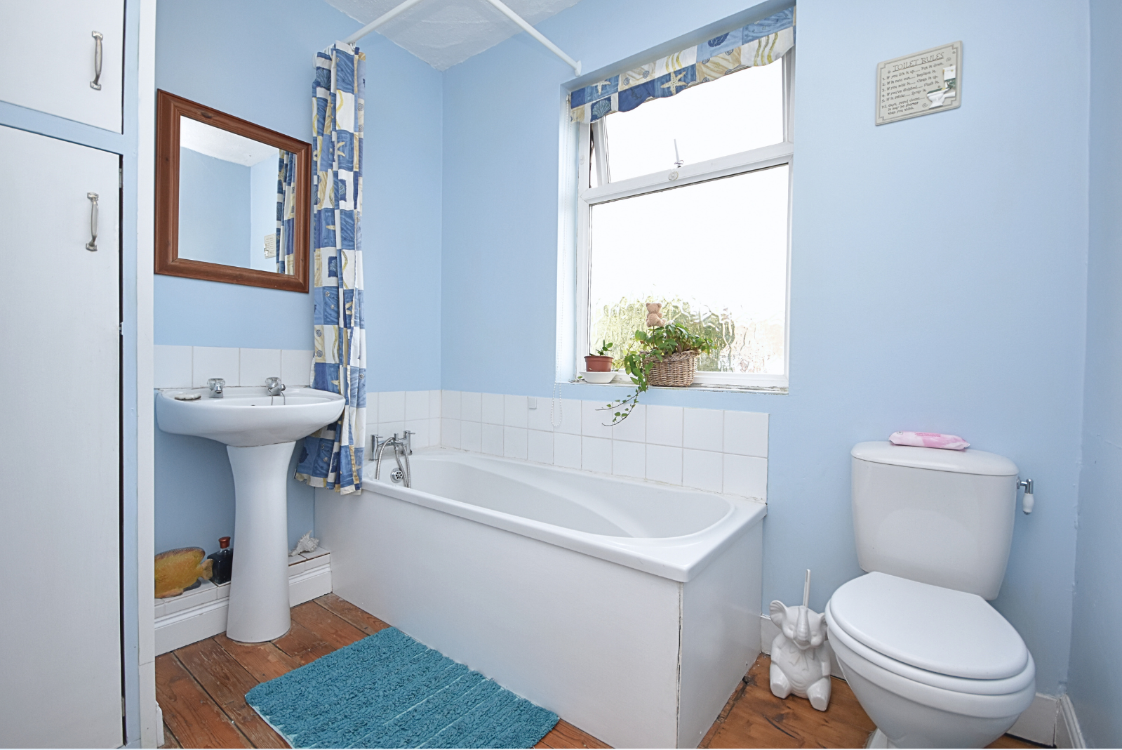 Comprising of; Original wooden floorboards, three piece bathroom suite- featuring; Hand Wash Basin with individual hot/cold taps over, Bath with mixer tap over and W/C. Storage Cupboard built in.