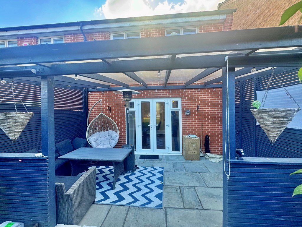 The accommodation is thoughtfully arranged over two floors, providing a practical and versatile layout. On the ground floor, the entrance hall offers immediate access to a re-fitted guest WC and leads to both the kitchen/breakfast room and the main living space. The kitchen/breakfast room, located at the front of the property, is generously proportioned and designed to accommodate both cooking and dining, creating an ideal hub for family life. To the rear, the spacious lounge/dining room is filled with natural light and benefits from large windows and patio doors that open directly onto a delightful covered entertaining area, seamlessly blending indoor and outdoor living. Additional storage is provided by an understairs cupboard.