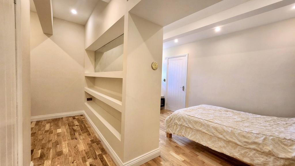 Upstairs, a double bedroom enjoys far-reaching rural views, complemented by a modern bathroom with separate shower. The ground floor hosts three generously sized double bedrooms, two of which feature dressing rooms and en-suite shower rooms for ultimate comfort and privacy. A versatile fifth bedroom or study/playroom provides flexibility to suit your lifestyle.