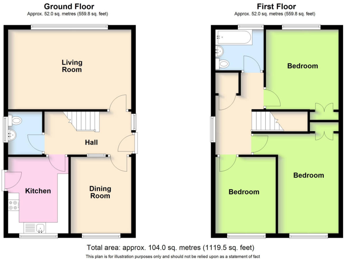 The ground floor welcomes you with a spacious entrance hall that leads to a bright and airy lounge, a separate dining room ideal for entertaining, and a well-appointed fitted kitchen. Complementing the living accommodation is a useful ground-floor w.c/utility. To the first floor, the property offers three generously sized double bedrooms, all served by a well-proportioned family bathroom. Further advantages include gas-fired central heating, powered by a boiler installed approximately two years ago, ensuring comfort and efficiency throughout the seasons.