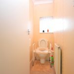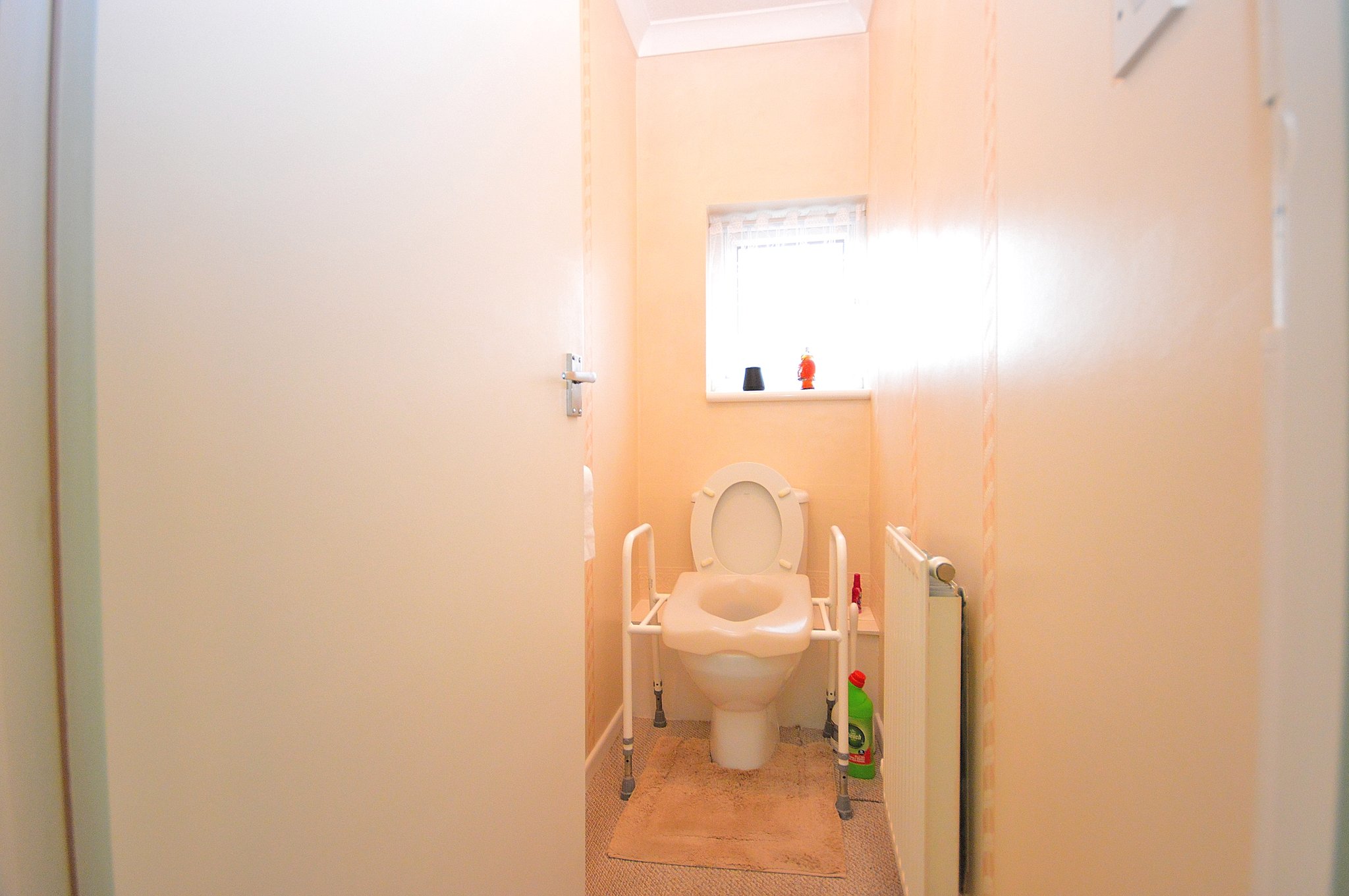 Low flush Wc. Coving. Obscured double glazed window to the front aspect.