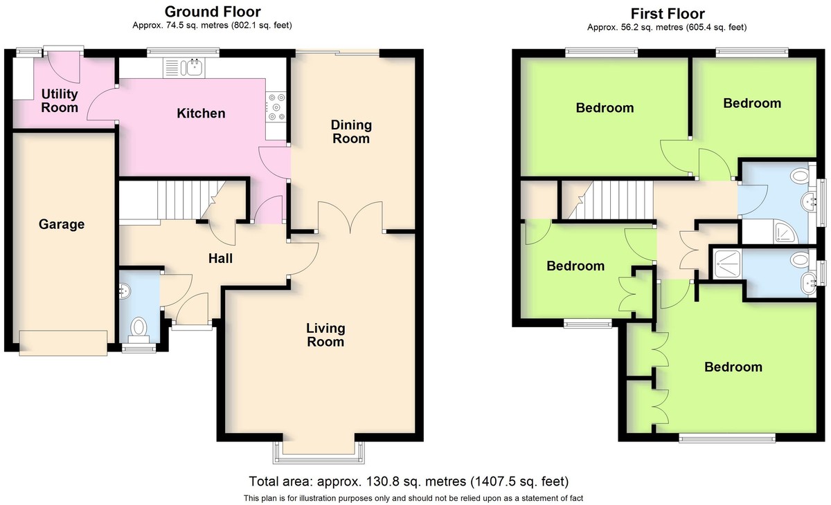 To the first floor are four bedrooms, including a principal bedroom with en suite shower room, complemented by a family bathroom. Externally, the property benefits from an integrated garage and attractive garden space, with the widening rear plot providing clear potential to extend, subject to the usual planning permissions. An ideal opportunity for families seeking a detached home with scope to adapt and add value in a highly desirable location.