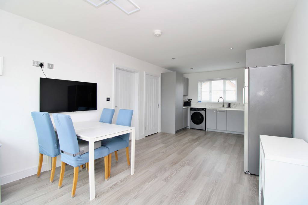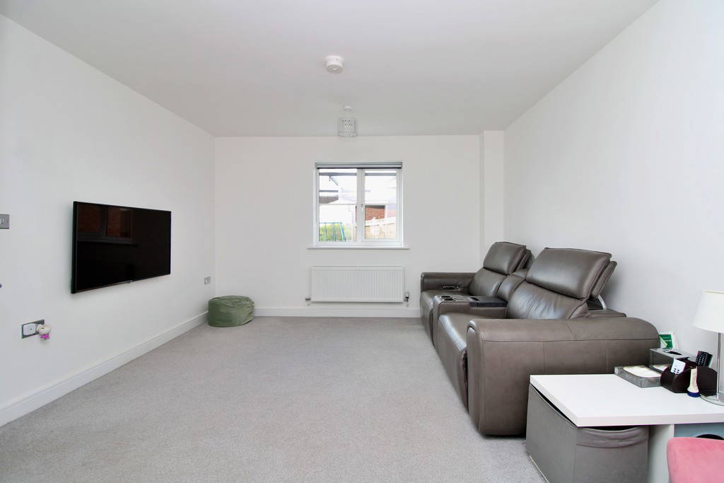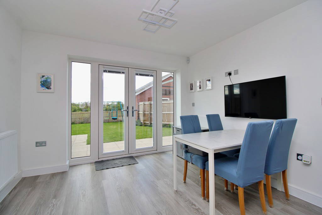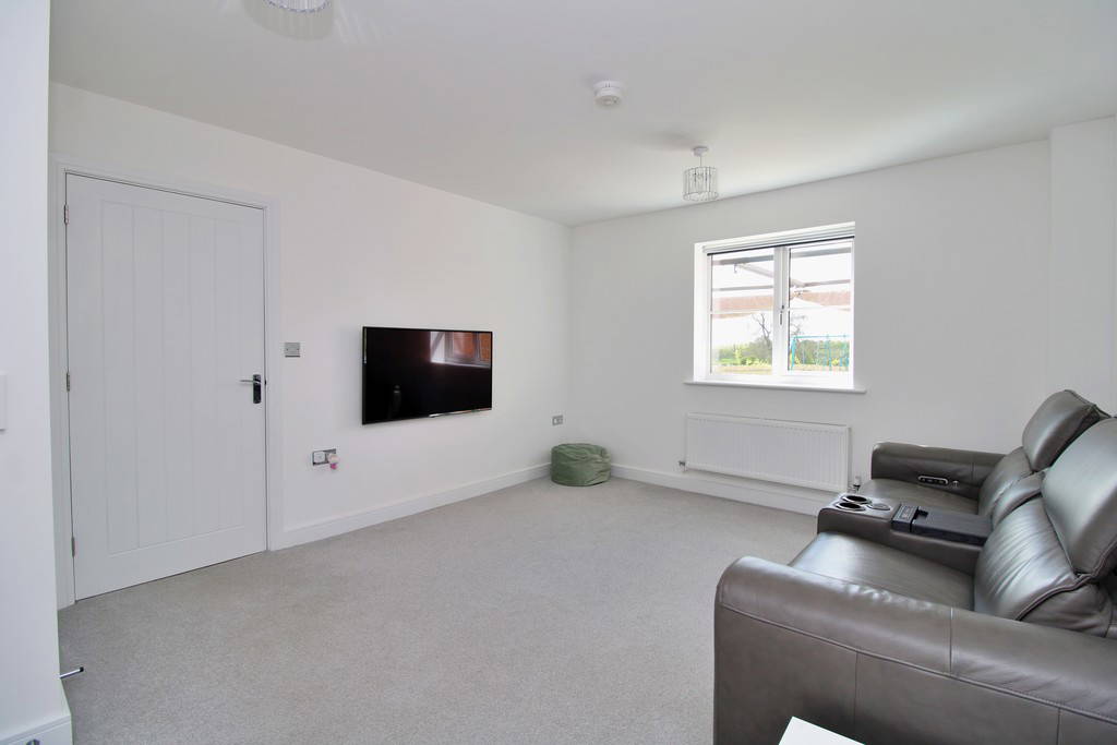 The living room is a bright and spacious space, also enjoying views over the rear garden and beyond, and is equipped with multiple TV points and chrome sockets with USB charging.