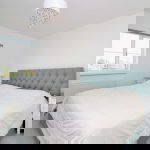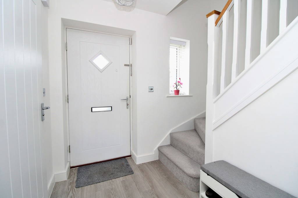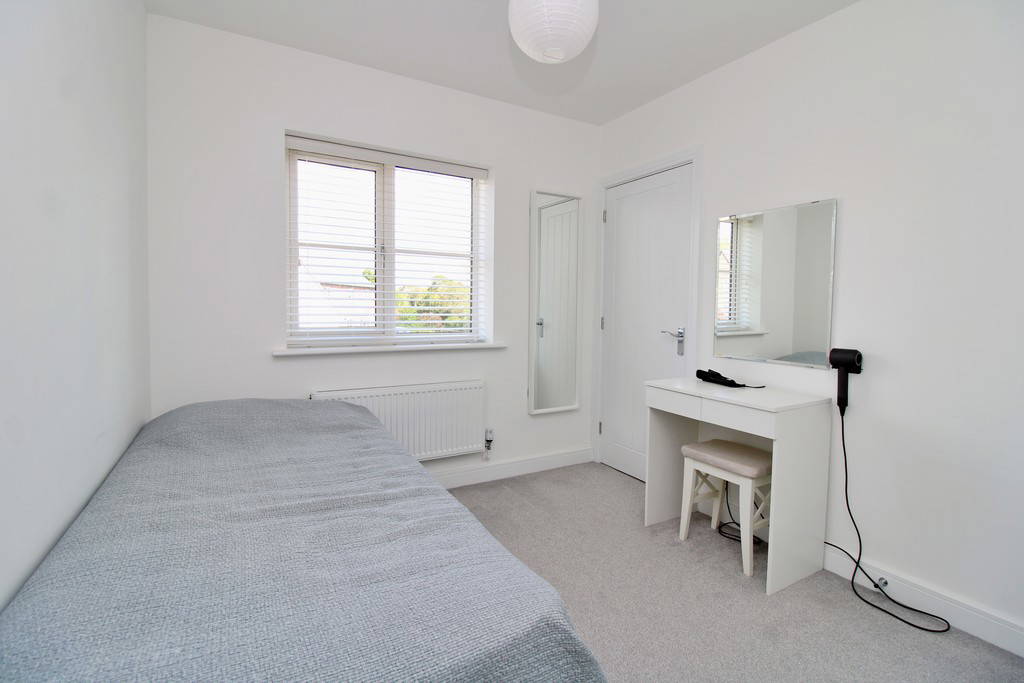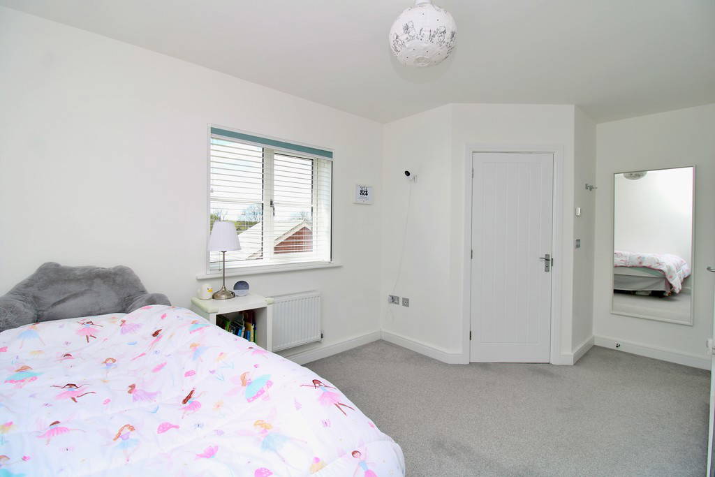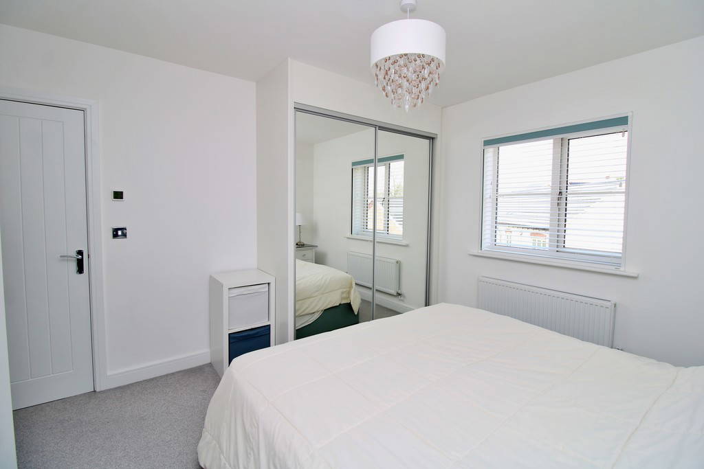 Upstairs, the property continues to impress with three well-proportioned bedrooms, a modern family bathroom and an en-suite to the main bedroom. The principal bedroom is a generous double with open views, TV point and USB sockets. Bedroom two benefits from a mirrored sliding wardrobe, while bedroom three offers built-in storage. The landing also provides access to a useful airing cupboard with hanging space, as well as a fully boarded and insulated loft, complete with shelving, power and lighting, offering excellent additional storage.