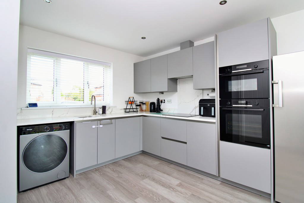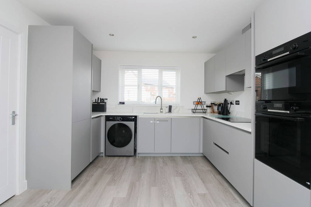Finished to a high standard throughout, the property benefits from a range of quality fixtures and upgrades including Porcelanosa tiling, Villeroy & Boch sanitaryware, integrated Bosch appliances, marble-effect quartz worktops, and high-quality German kitchen units. Further features include Karndean flooring, chrome sockets with USB chargers, and a highly efficient Mitsubishi Ecodan air source heat pump. Built just a few years ago by Williams Homes, the property still benefits from the remainder of its NHBC warranty.