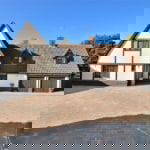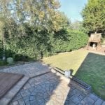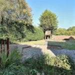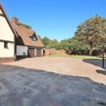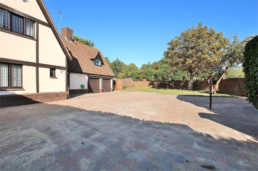 Driveway accessed via electric gates and enclosed by a brick wall. Providing off road parking for numerous cars. Garden area laid to lawn.