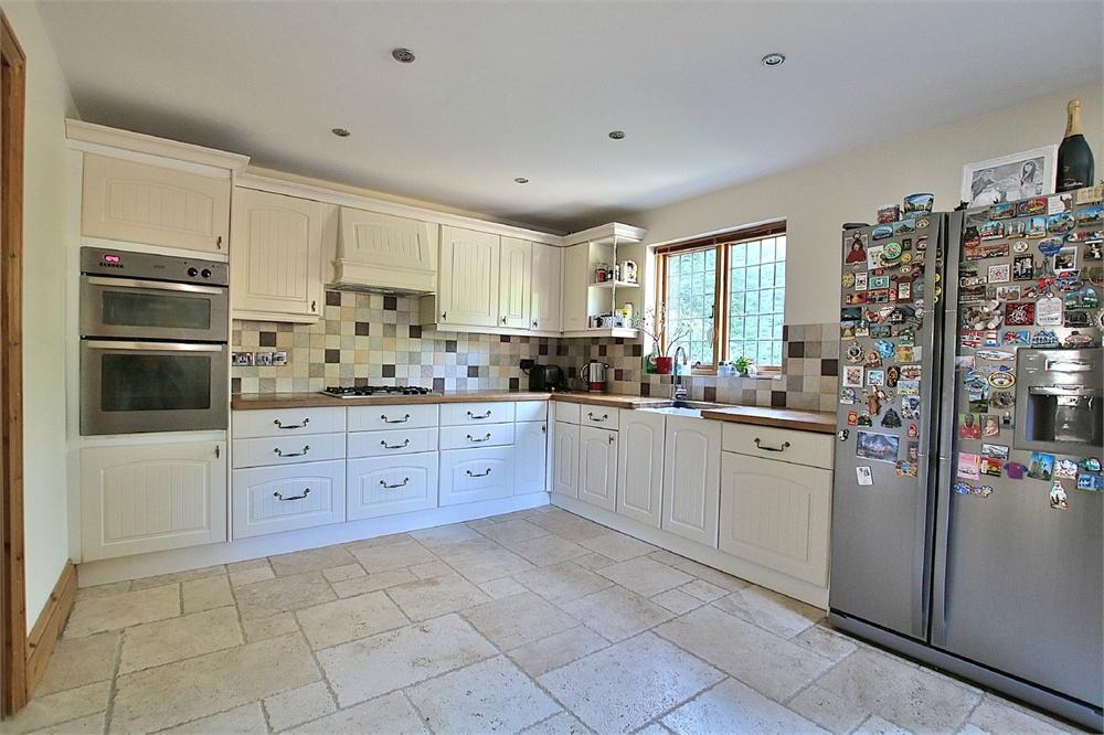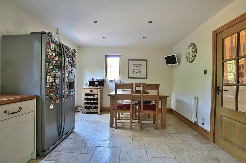 17' 7" x 11' 2" (5.36m x 3.40m) Comprising Belfast sink unit, floor standing cupboards with worktop above, eye level cupboards, integrated electric oven with gas hob and extractor above, tiled splash back, tiled floor, under floor heating, radiator, double glazed windows to side and rear. Door to rear.