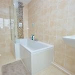 9' 8" x 7' 6" (2.95m x 2.29m) 'L Shaped' Room - Maximum measurements provided - Fitted suite comprising of a low flush WC, wash hand basin and bath with shower above. Heated towel rail. Fully tiled walls and floor. Upvc double glazed window to the front aspect.