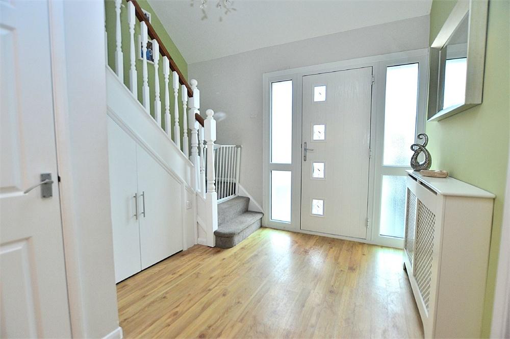 Radiator. Under stairs storage cupboard. Laminate flooring. Stairs rising to the first floor. Built in cupboard.
