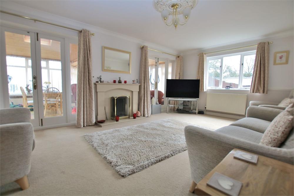 19' 5" x 12' 6" (5.92m x 3.81m) Feature open fireplace, two double doors to conservatory, radiator, window to side aspect, T.V. point, coving to ceiling, ornate ceiling rose.