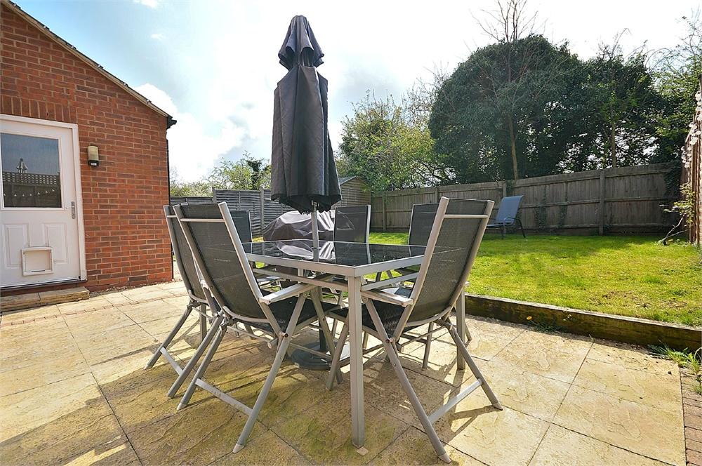 South facing garden backing on to fields which is mainly laid to lawn with a paved patio. Enclosed with timber panelled fencing to the boundaries with gated pedestrian access to the front.