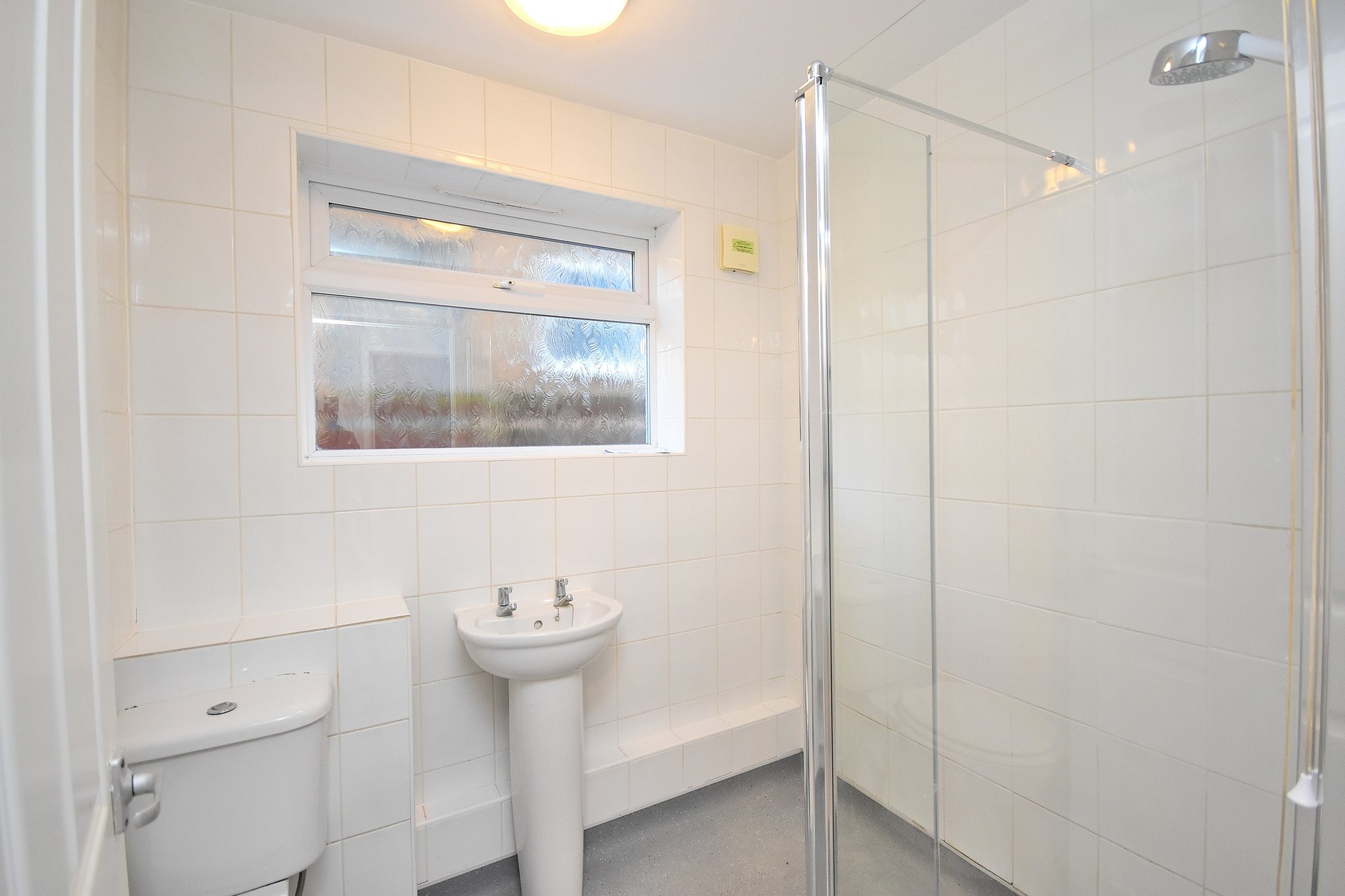 6' 11" x 5' 6" (2.11m x 1.68m) Fitted three piece suite comprising of a low flush WC pedestal wash hand basin and shower enclosure. Double glazed window to the side aspect.