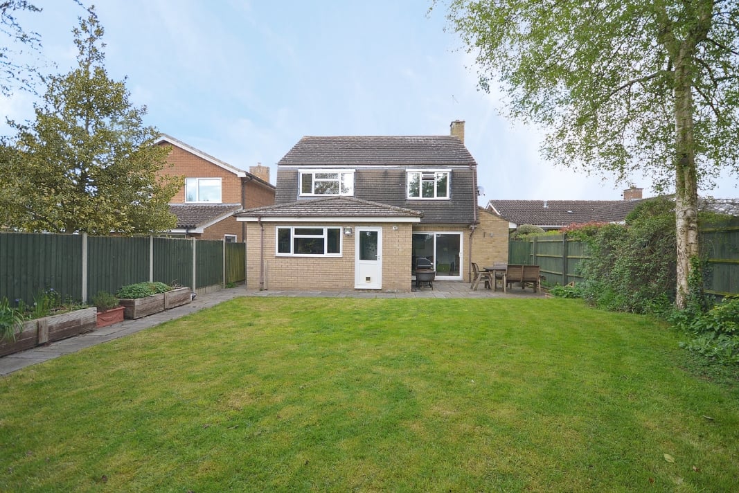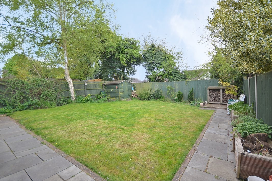 Landscaped garden which is mainly laid to lawn with surrounding pati o and decked areas. Borders to the boundary containing a variety of mature trees, flowers and shrubs. Enclosed with ti mber panelled fencing to the boundaries.