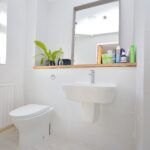 Fitt ed two piece suite comprising of a low flush WC and a vanity unit incorpora ng a wash hand basin. Tiled floor. Tiling to water sensi ve areas. Radiator. Obscure upvc double glazed window to the side aspect.
