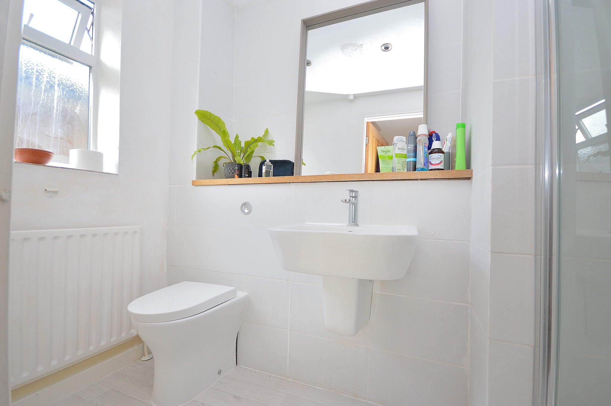 Fi tted three piece suite comprising of a low flush WC, wash hand basin and a separate shower enclosure with fi ed power shower above. Tiling to water sensi ve areas. Radiator.