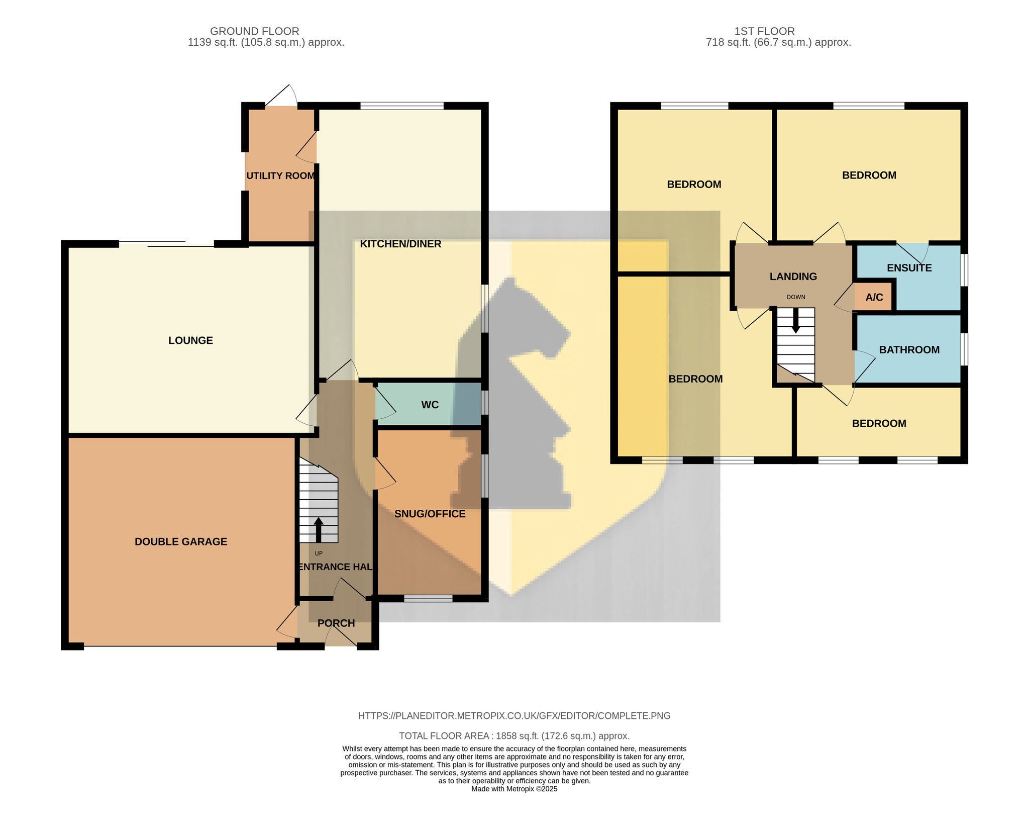 8' 8" x 5' 7" (2.64m x 1.70m) Fitted suite comprising of a low flush WC, wash hand basin and a panelled bath with fi ed shower above. Heated chrome towel rail. Tiling to water sensi tive areas. Tiled floor. Obscure upvc double glazed window to the side aspect.