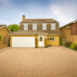 Block paved driveway providing off road parking for several vehicles. Leading to the integral double garage and the front entrance. Gated side pedestrian access to the rear garden.