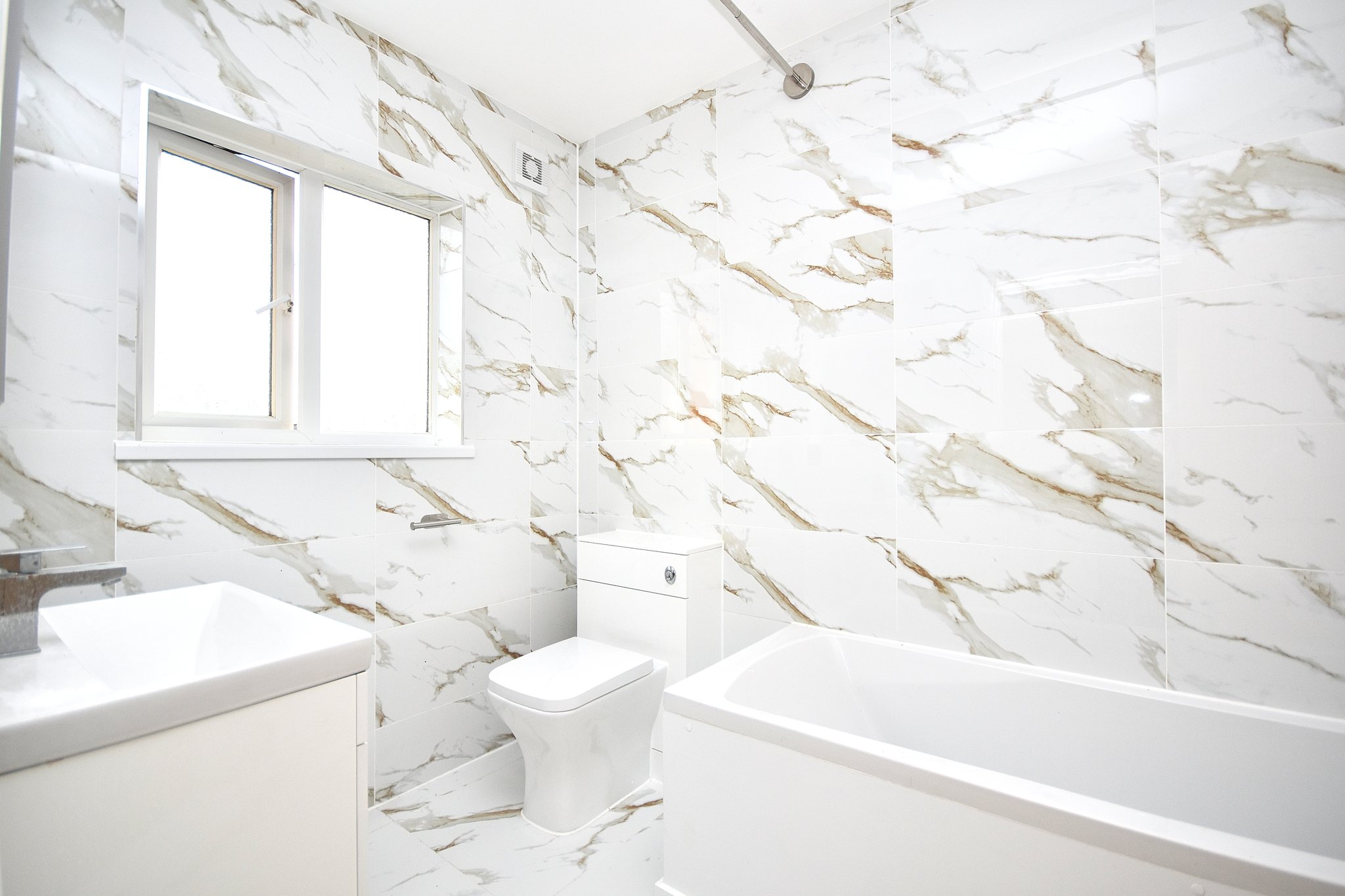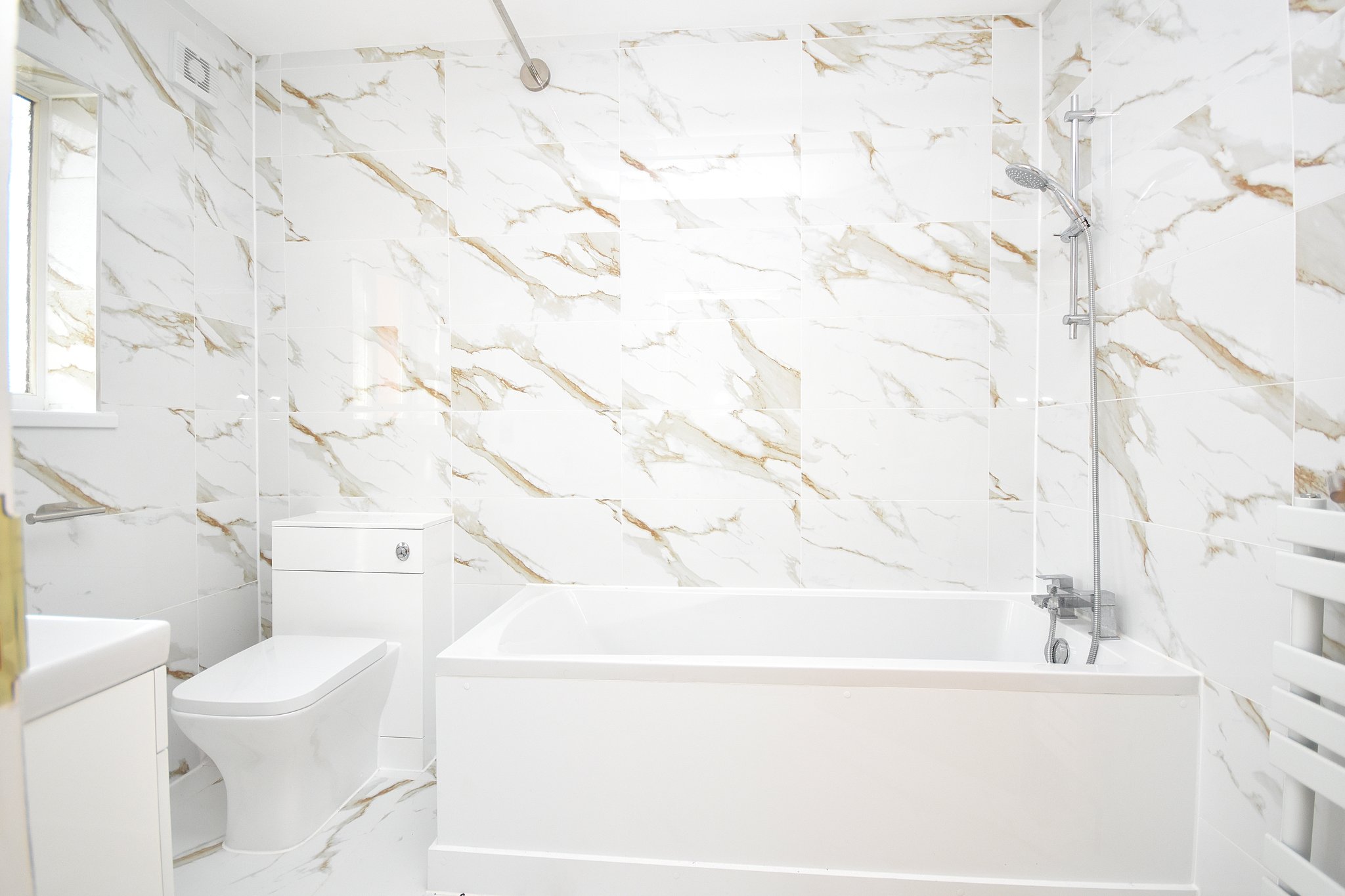 Comprising of; Tiled walls and floors. Bath with mixer tap over. Hand wash basin. W/C. Heated towel rail. UPVC double glazed window to the side aspect.