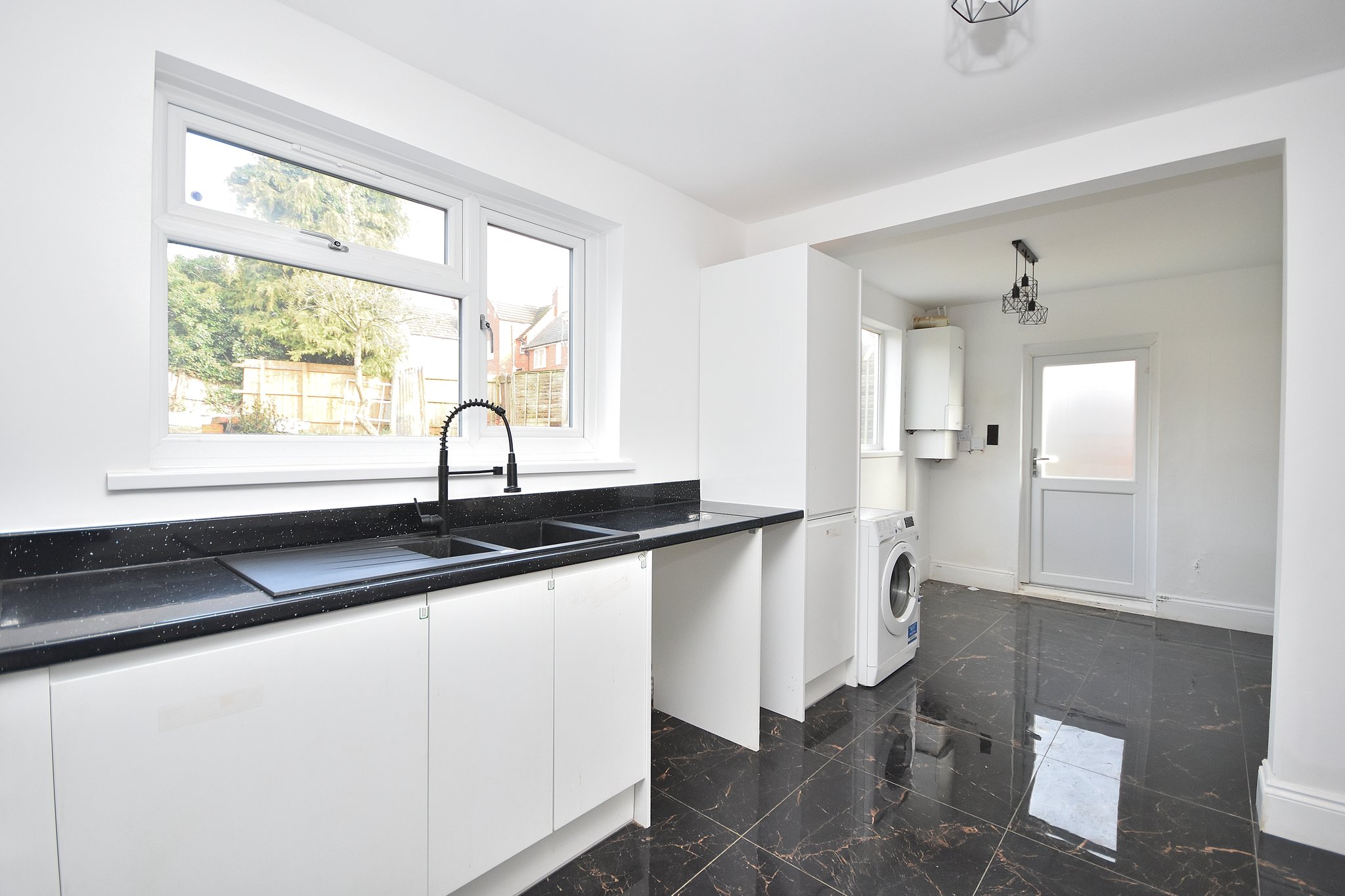 Comprising of; Tiled flooring. Eye level and base level kitchen storage units. Space and plumbing for washing machine. Space and electric for oven. Extractor fan fitted. UPVC double glazed window to the rear aspect.